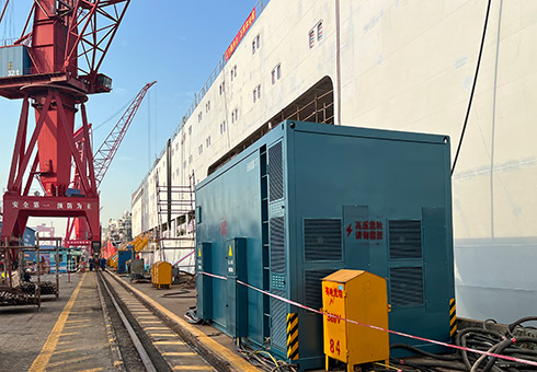 我司歷時(shí)三年不斷研發(fā)及優(yōu)化設(shè)計(jì)的1250KVA全電子式有源串聯(lián)補(bǔ)償岸電穩(wěn)壓裝置正式連船供電
